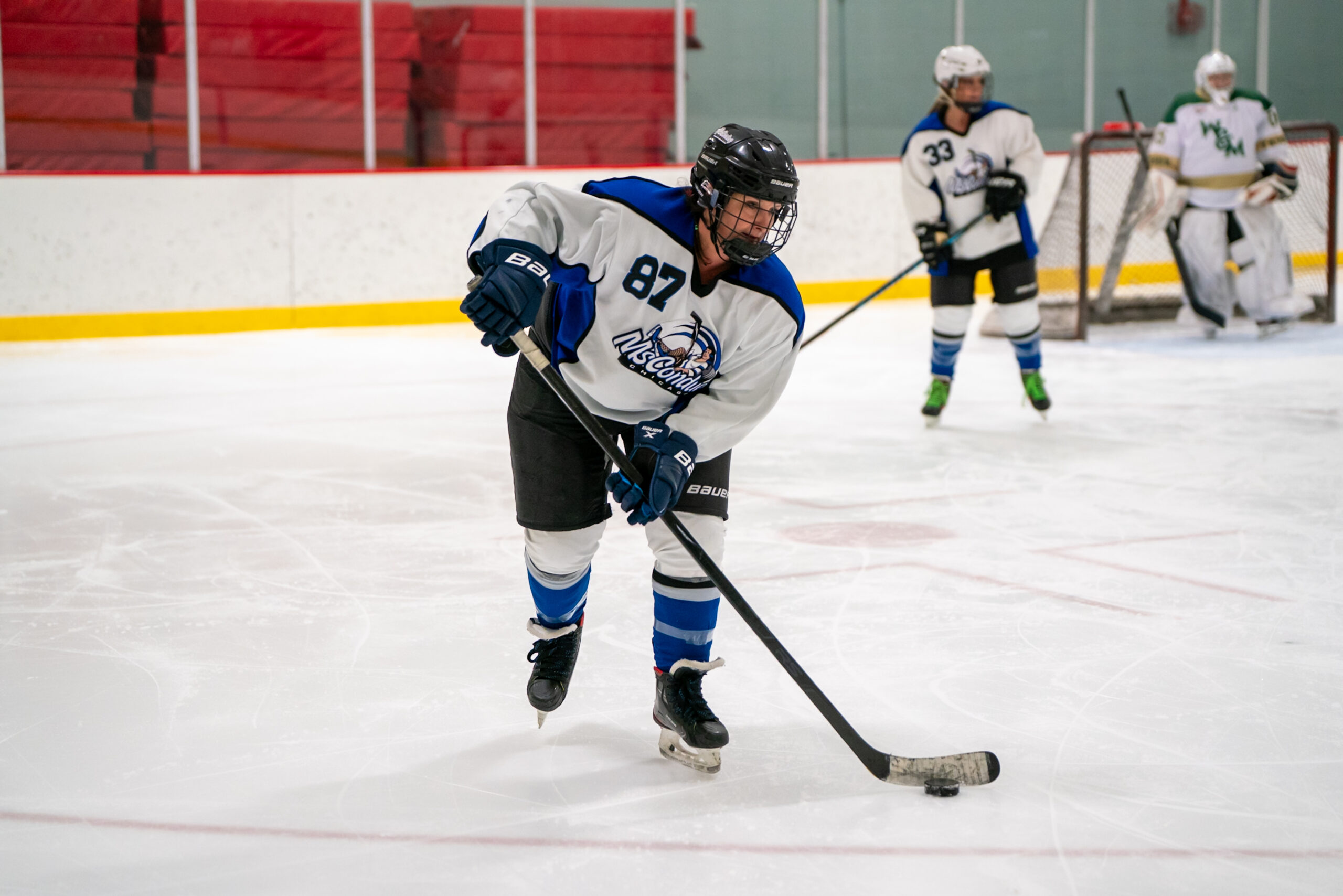 While attending a kid’s birthday party with my niece and nephew at Glacier Ice Arena, I was convinced to give hockey a try…..So I did…. and I was terrible at it. I spent most of that first skate falling down. I was so sore the next day, I couldn’t leave the couch! But, I had so much fun trying that I decided to stick with it…and met the most amazing ladies in my MsConduct teammates.